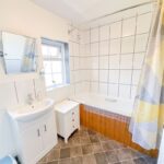Double glazed windows to the rear, paneled bath with shower over, low level WC, part tiled walls and a radiator.