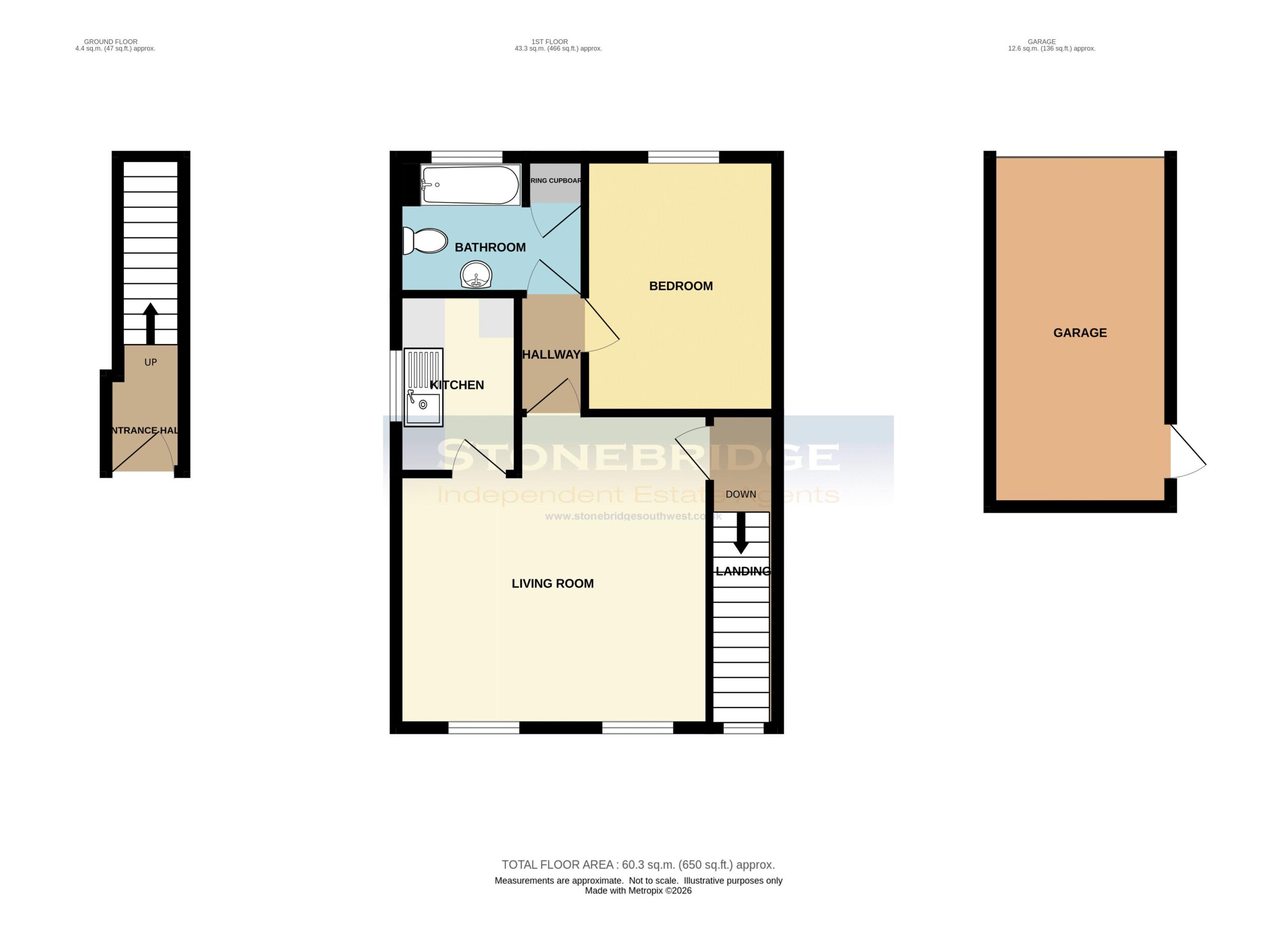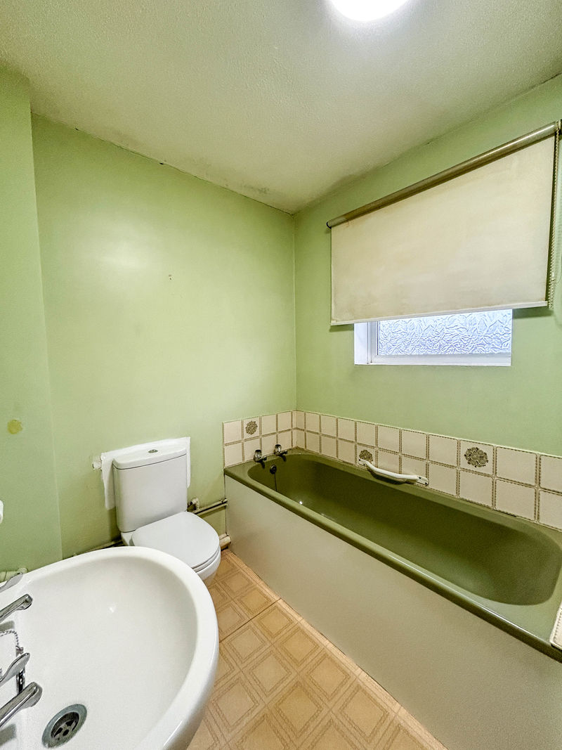 Panelled bath, pedestal wash basin and low level WC. Double glazed window, airing cupboard.